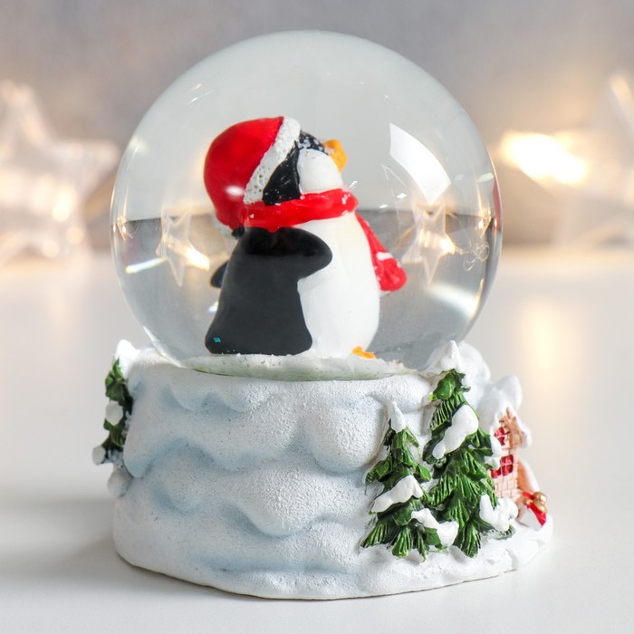 Сувенир полистоун водяной шар "Пухлый пингвинёнок в шарфике" 7х6,7х8,8 см