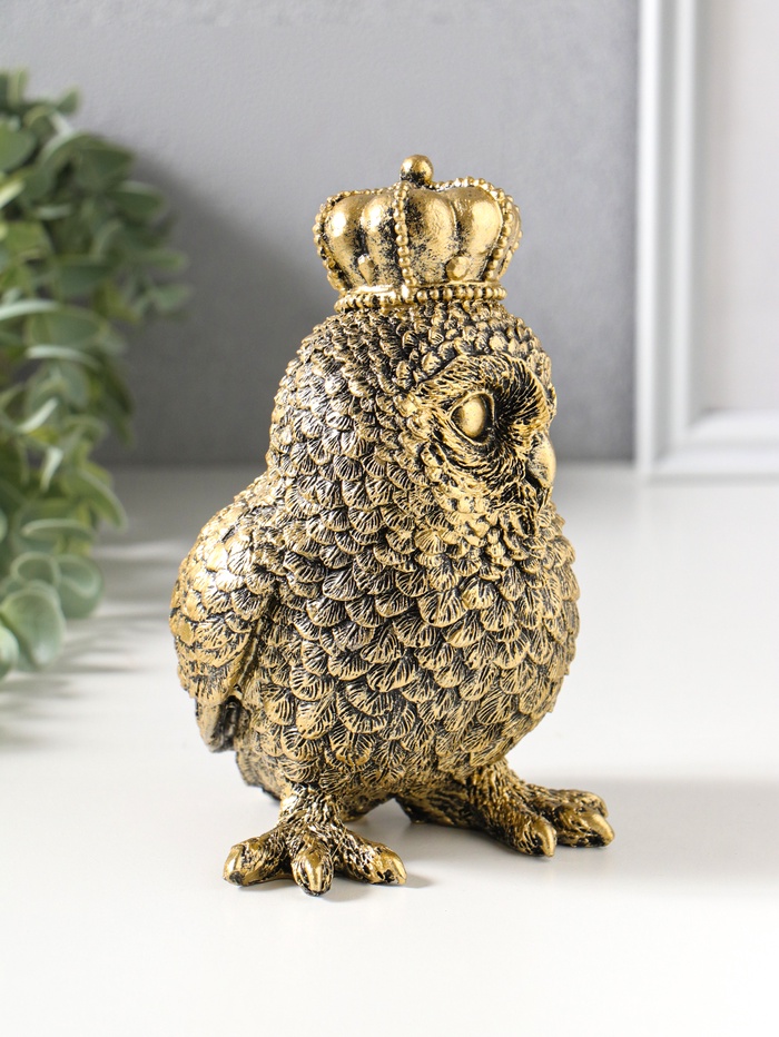 Сувенир полистоун "Золотая сова в короне" 10х10х16 см