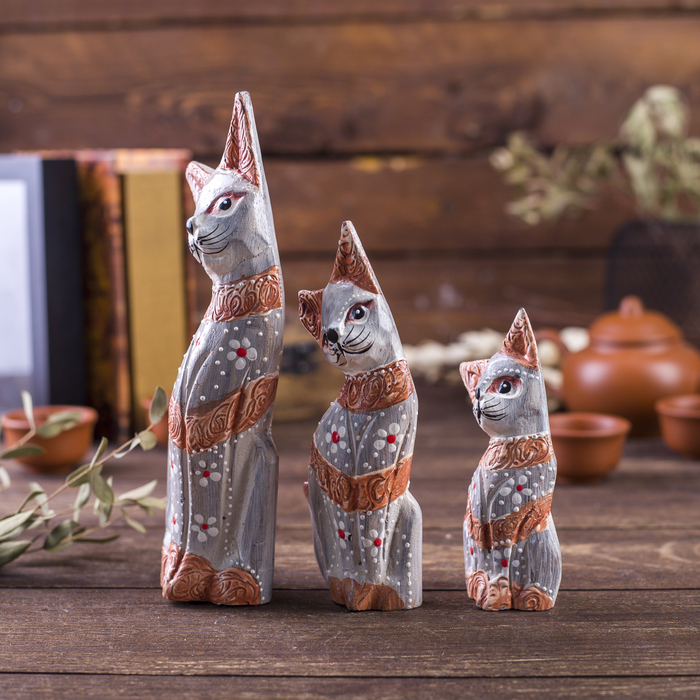 Сувенирный набор «Кошечки с полосками», h=20 см, h=17 см, h=15 см, дерево