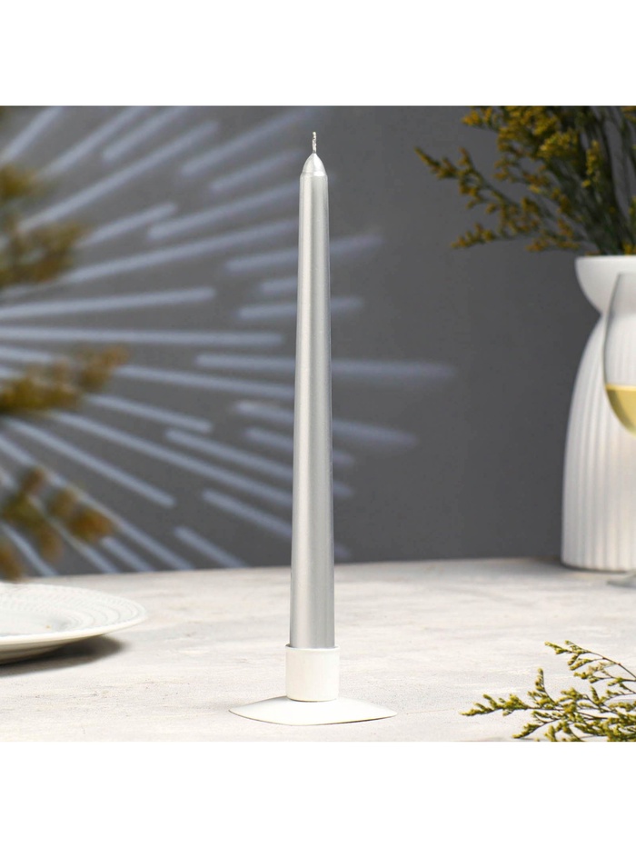 Свеча античная, 2.3×25 см, лакированная, серебряный металлик