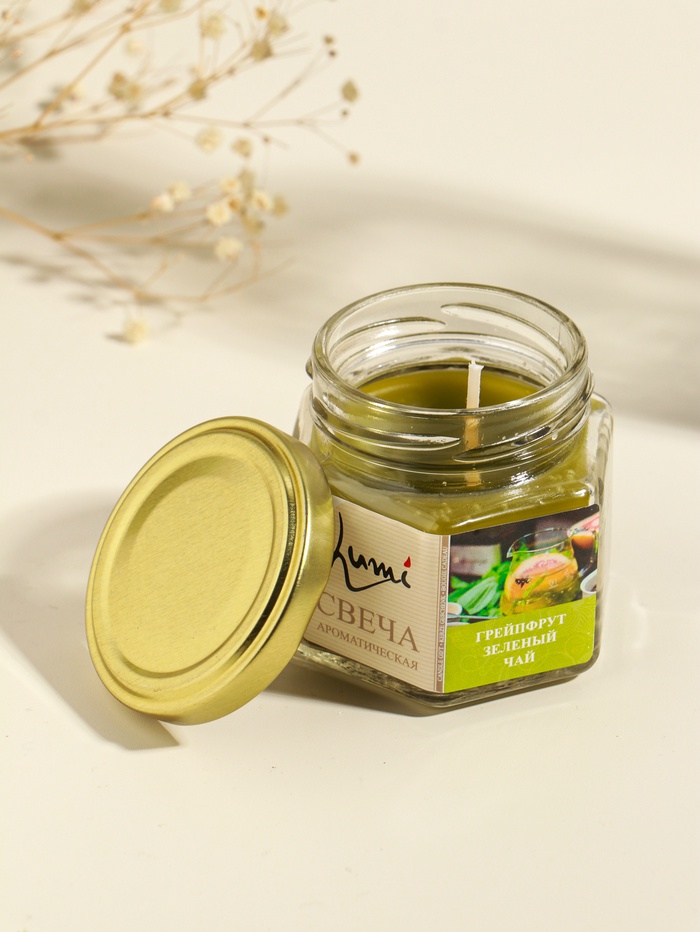 Свеча ароматическая в банке 70 гр воска, грейпфрут+зелёный чай