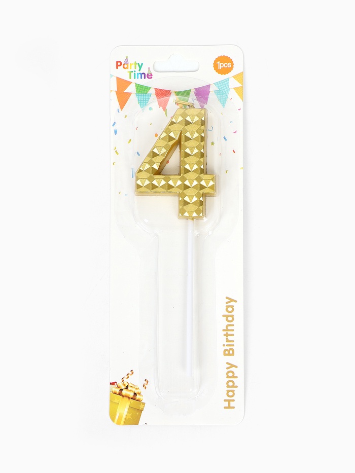 Свеча для торта «Элемент», цифра 4, золотая