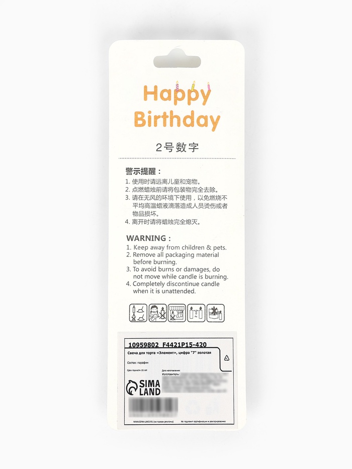 Свеча для торта «Элемент», цифра 7, золотая