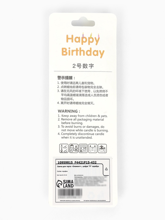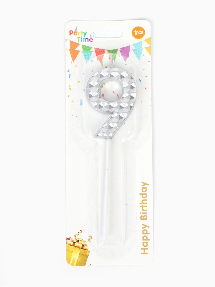 Свеча для торта «Элемент», цифра 9, серебро