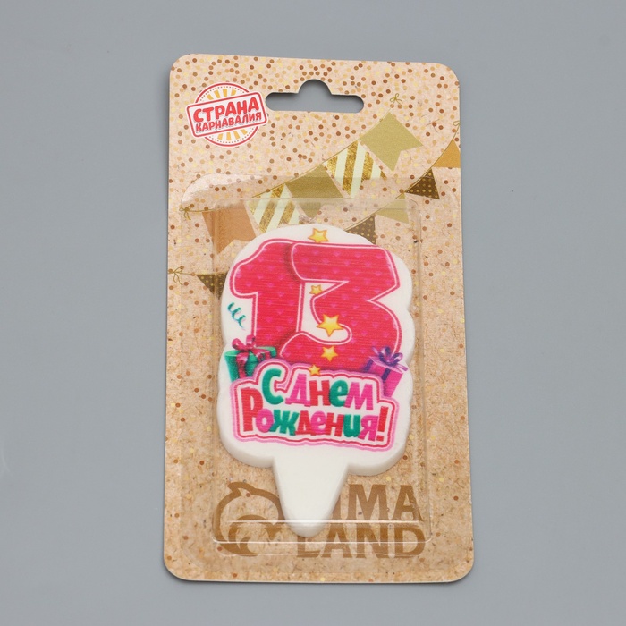 Свеча для торта «С Днём Рождения, цифра 13», розовая, 6.5 см