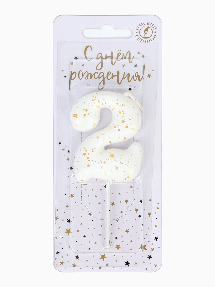 Свеча в торт «Белые брызги», цифра 2