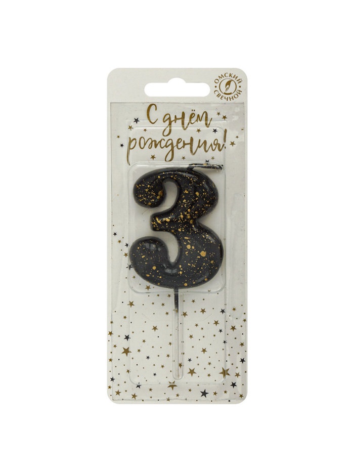 Свеча в торт "Черные брызги", цифра "3"
