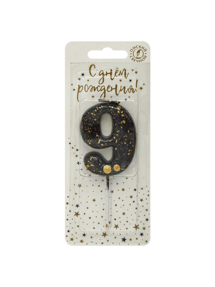 Свеча в торт "Черные брызги", цифра "9"