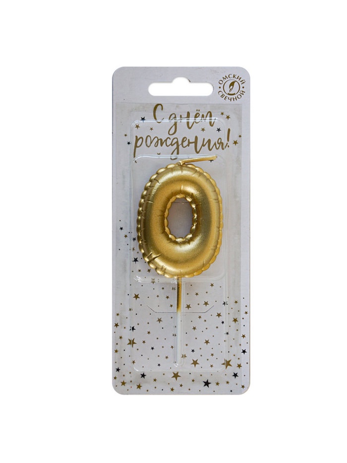 Свеча в торт на шпажке "Воздушая цифра", цифра "0", золото