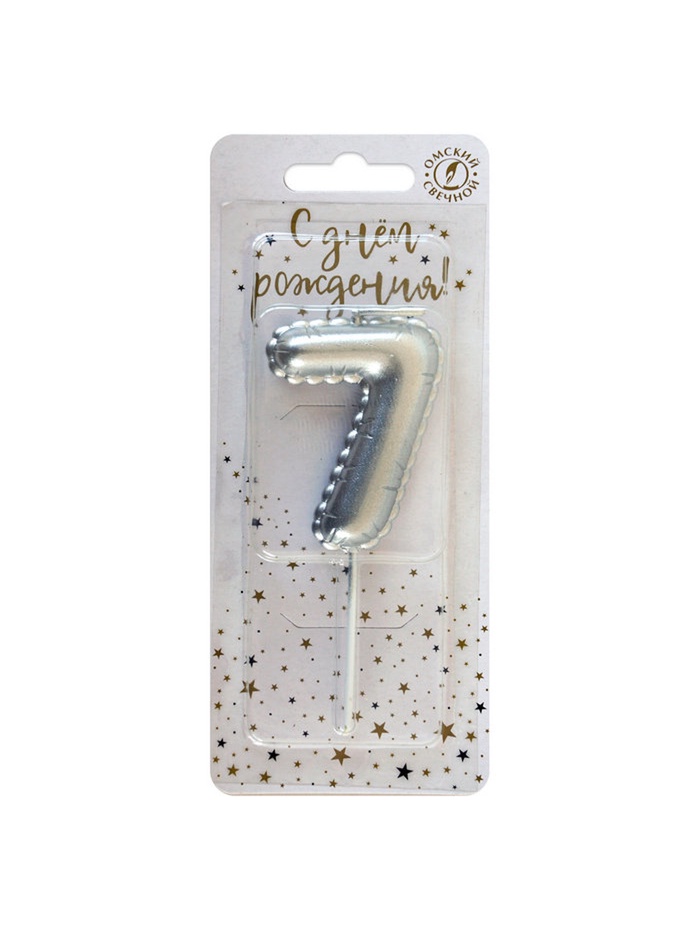 Свеча в торт на шпажке "Воздушая цифра", цифра "7", серебро