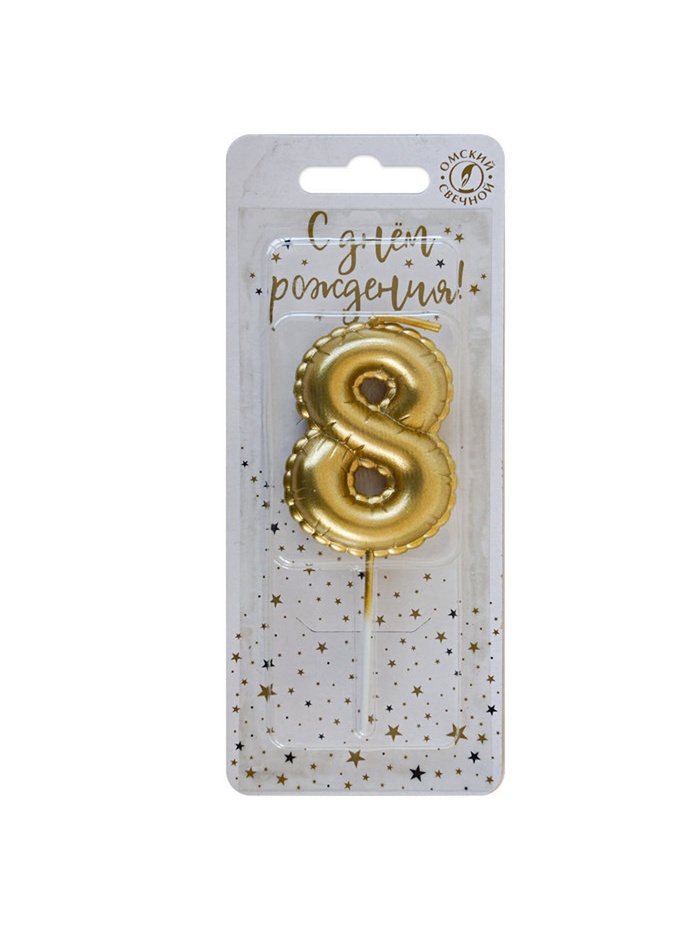 Свеча в торт на шпажке "Воздушая цифра", цифра "8", золото