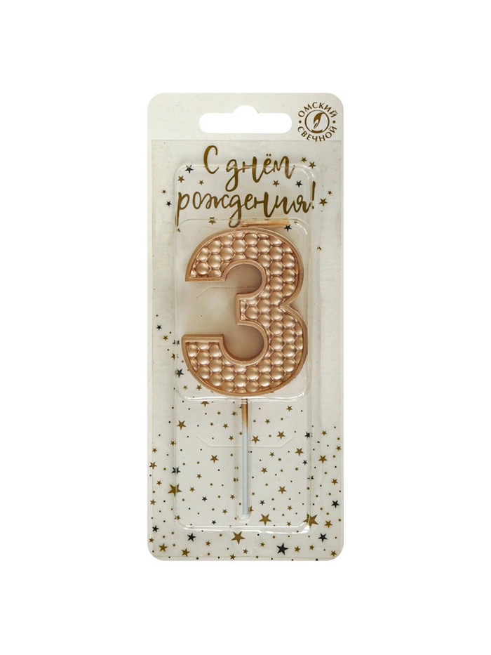 Свеча в торт на шпажке "Жемчужная", цифра "3", шампань