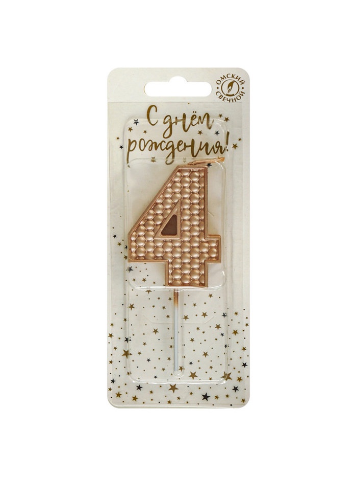 Свеча в торт на шпажке "Жемчужная", цифра "4", шампань