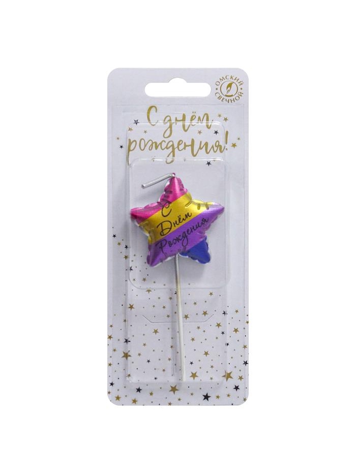 Свеча в торт " Воздуный шарик. С Днем Рождения. Звездочка", цветная