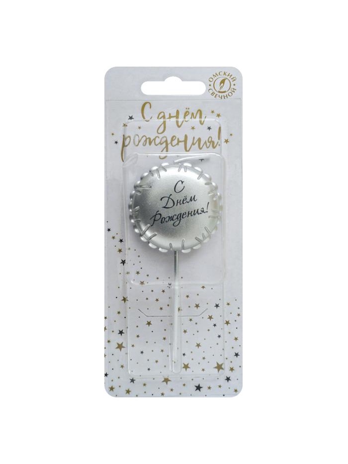 Свеча в торт "Воздушный шарик. С Днем Рождения", серебряная