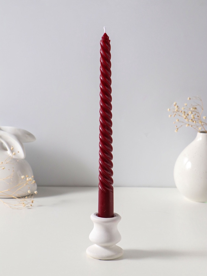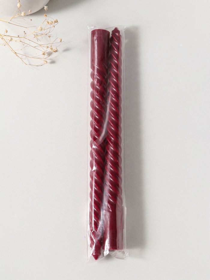Свеча витая 25 см (набор 2 шт) 57 гр, 5 ч, цв. бордовый