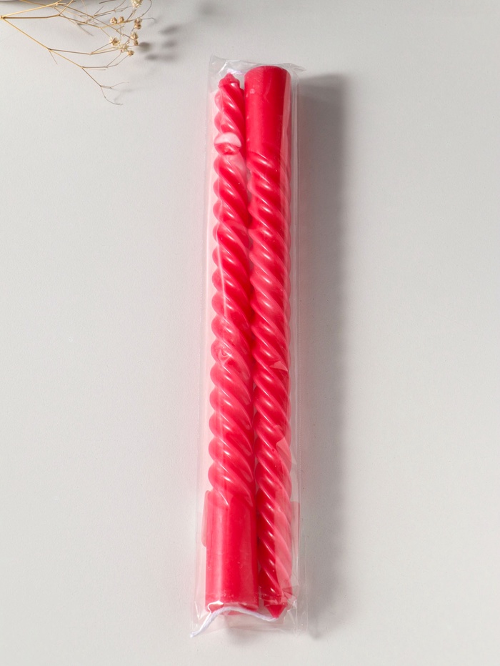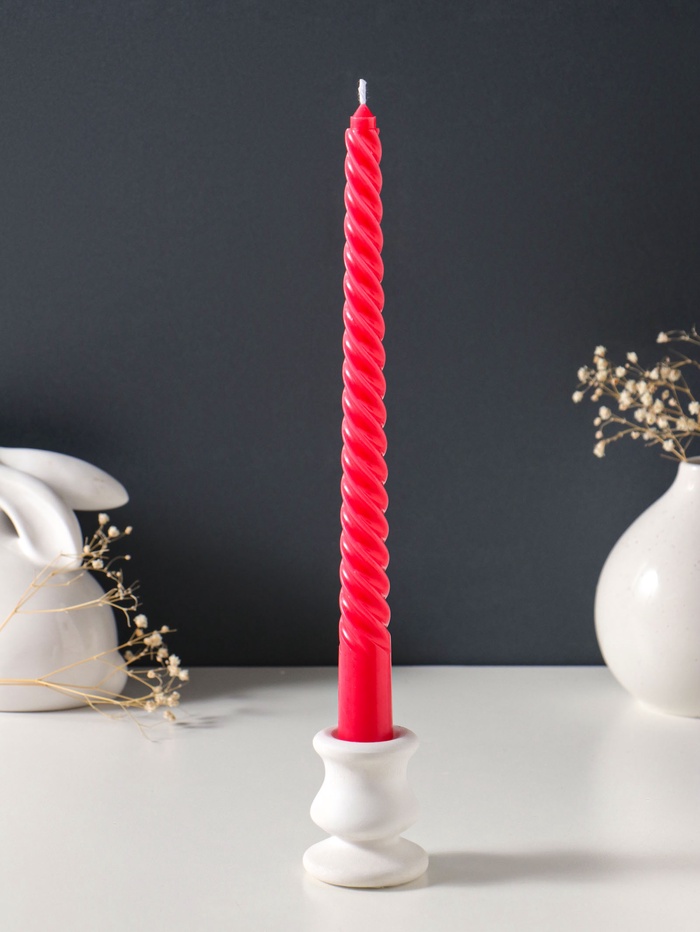 Свеча витая 25 см (набор 2 шт) 57 гр, 5 ч, цв. красный