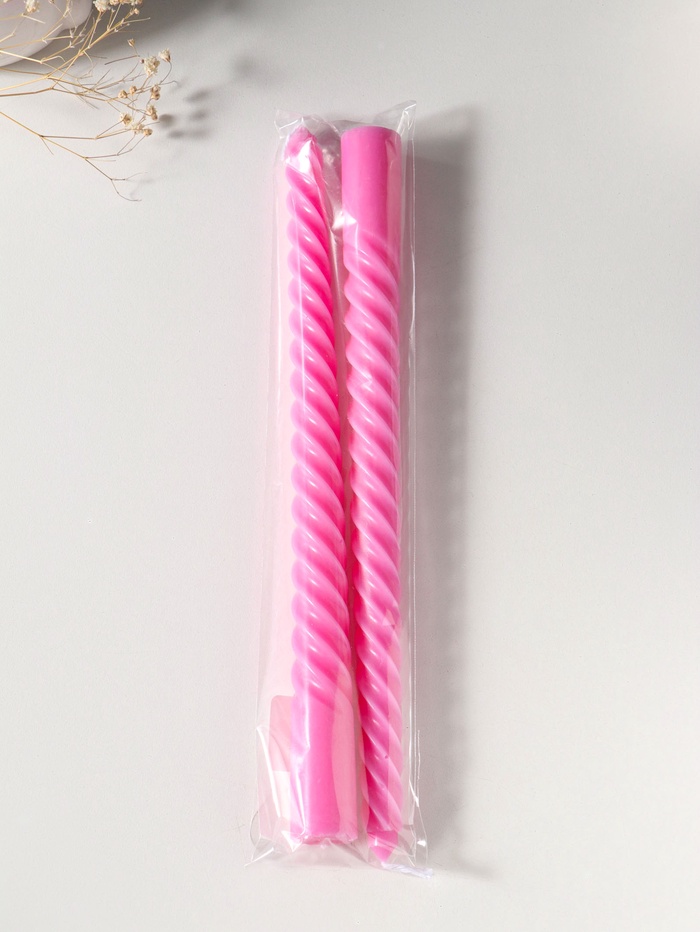 Свеча витая 25 см (набор 2 шт) 57 гр, 5 ч, цв. розовый
