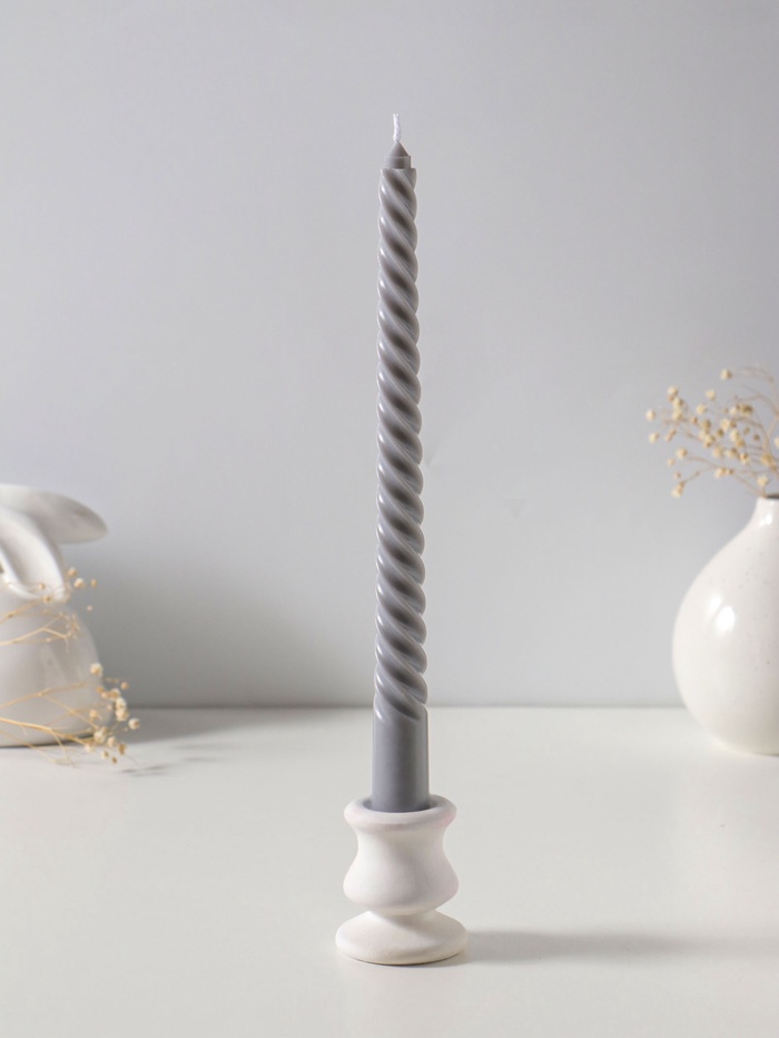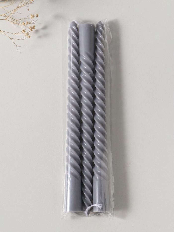 Свеча витая 25 см (набор 3 шт) 57 гр, 5 ч, цв. серый