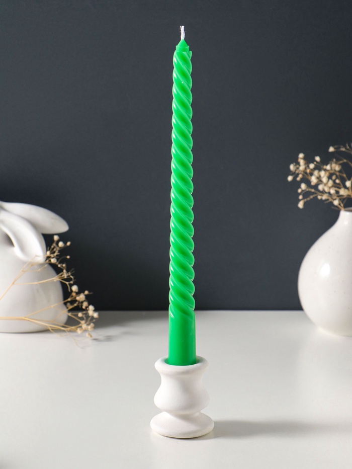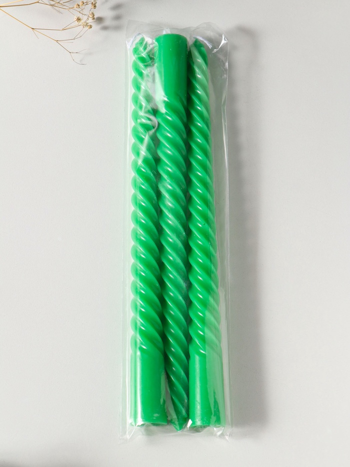 Свеча витая 25 см (набор 3 шт) 57 гр, 5 ч, цв. зелёный