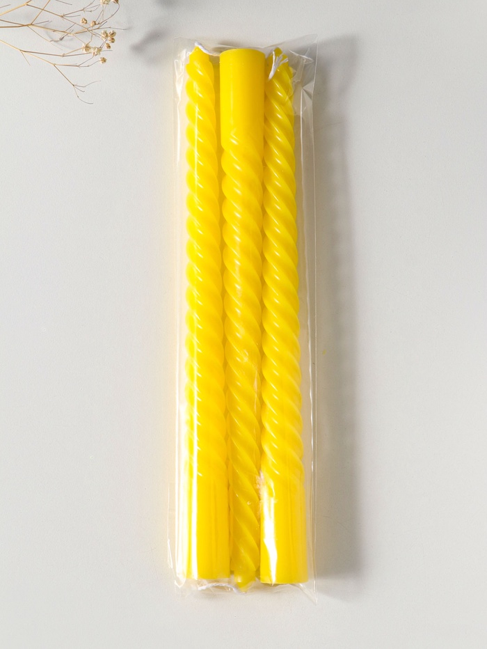 Свеча витая 25 см (набор 3 шт) 57 гр, 5 ч, цв. жёлтый