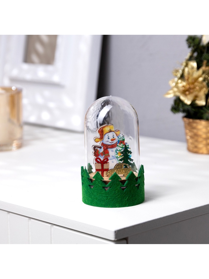 Светодиодная фигура под куполом «Снеговик» 6×10×6 см, дерево, батарейки LR1130×3 ( в комплекте), свечение тёплое белое
