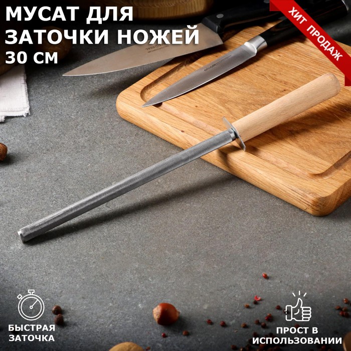 Точилка для ножей, мусат, с деревянной ручкой, 30 см