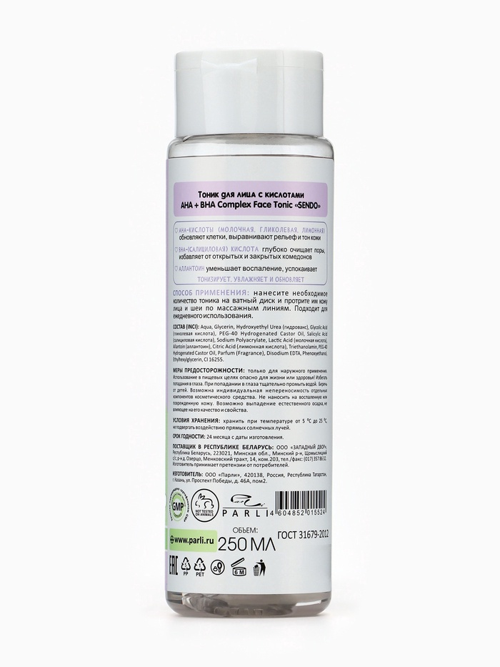 SENDO AHA+BHA Complex Face Tonic, 200 мл — гладкость, свежесть и сияние каждый день
