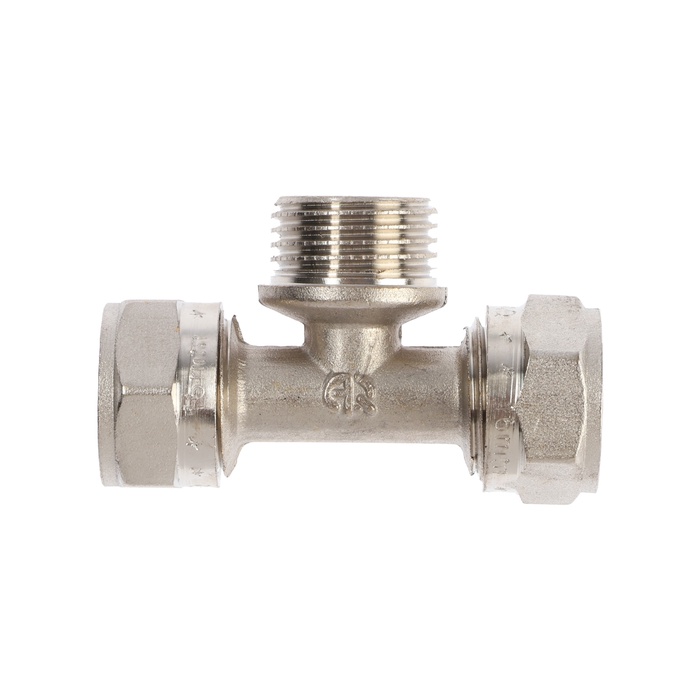 Никелированный тройник обжимной AQuapex Т-образной формы предназначен для соединения металлопластиковых труб – трубопровод от основной линии.