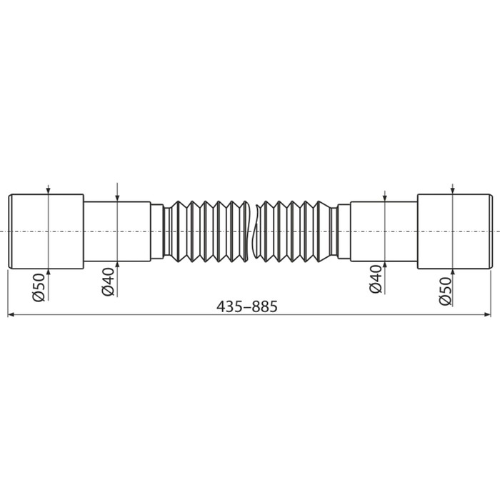 Труба гофрированная Alcaplast A720, 50/40×40/50 мм, длина 435–885 мм, полипропилен