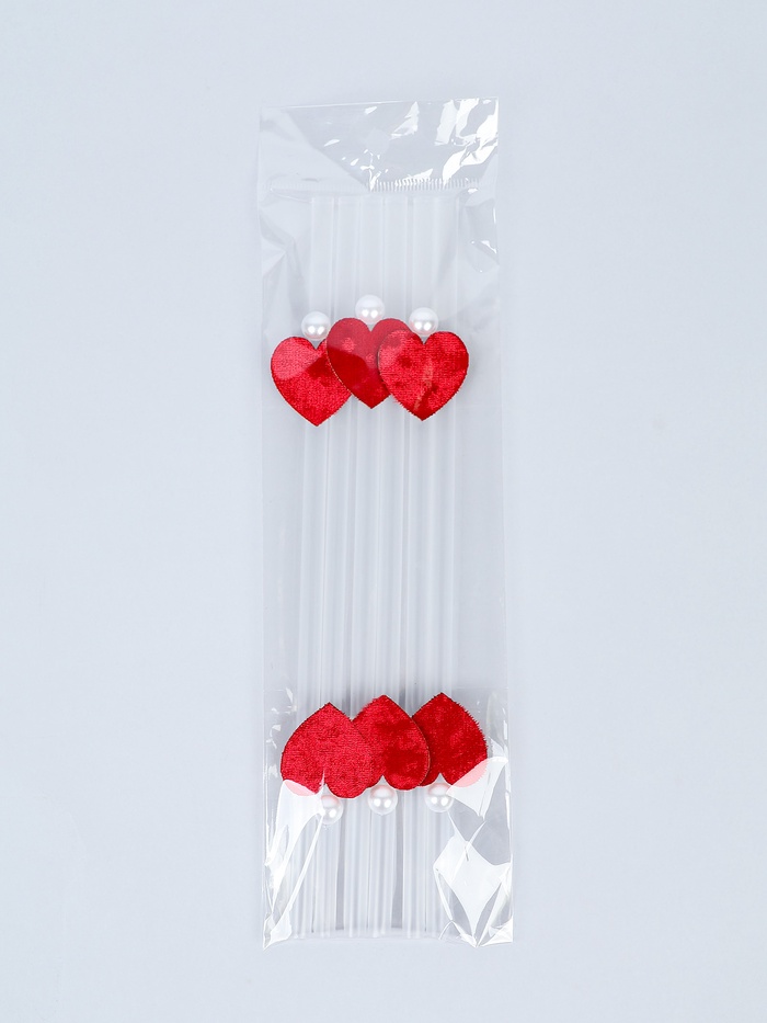 Трубочки для коктейля "сердечки, бусинки" (набор 6 шт)