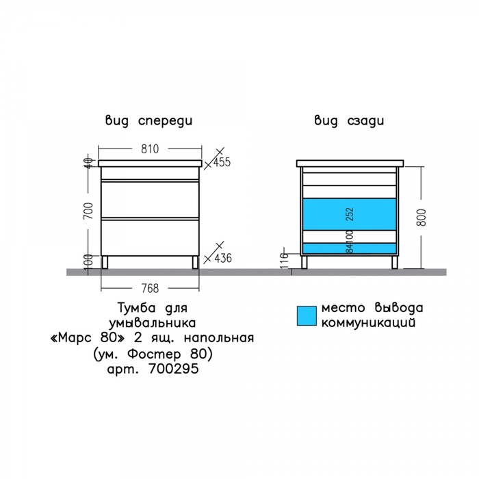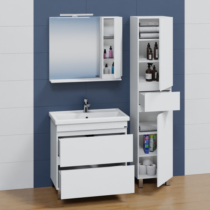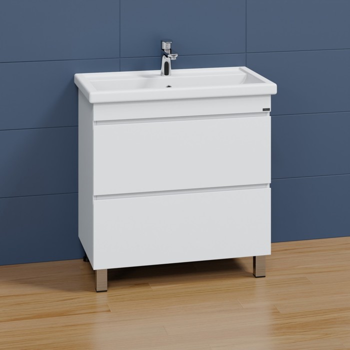 Тумба напольная «Марс 80», с раковиной «Фостер 80», 2 ящика, цвет белый