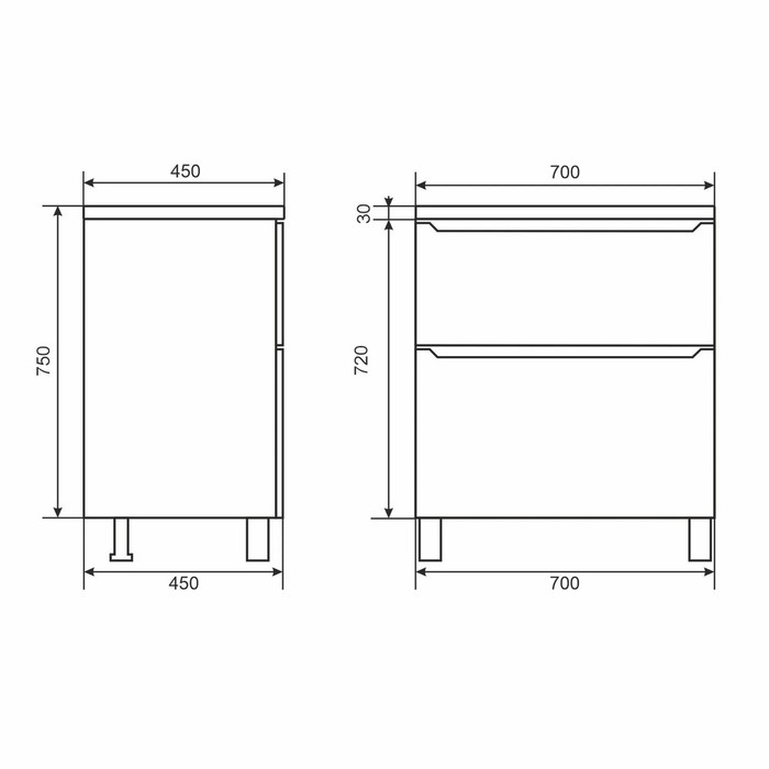 Напольная тумба под раковину для ванной Uperwood Tanos с двумя выдвижными ящиками представляет собой функциональное, надёжное и практичное решение, которое отлично впишется в любой современный дизайн ванной комнаты.