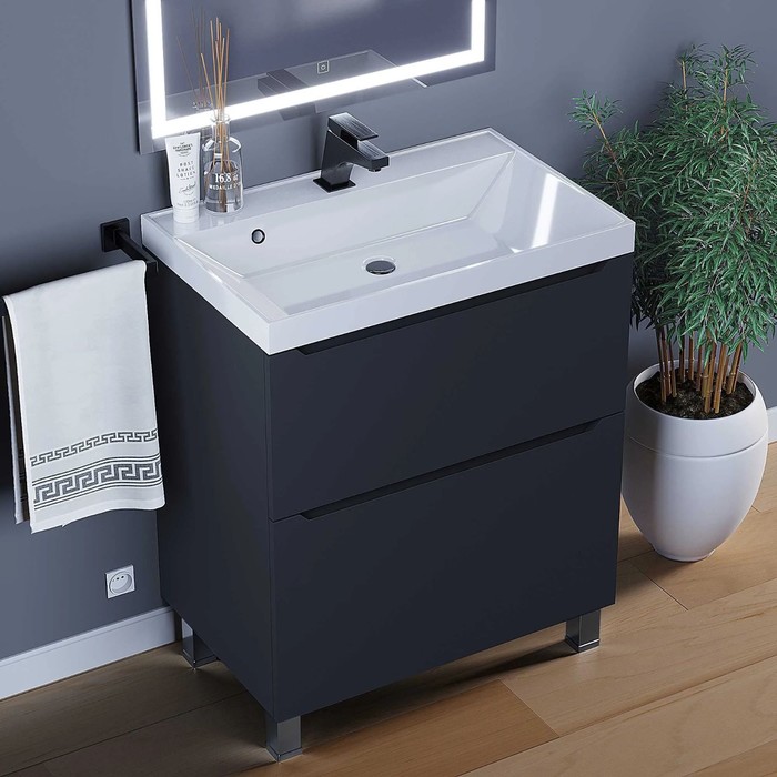 Тумба поставляется в собранном виде, в комплект входят ножки для напольного монтажа.