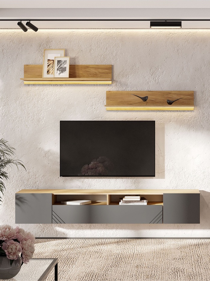 Тумба под ТВ Байкал, 2002х346х355, Дуб золотой/Графит
