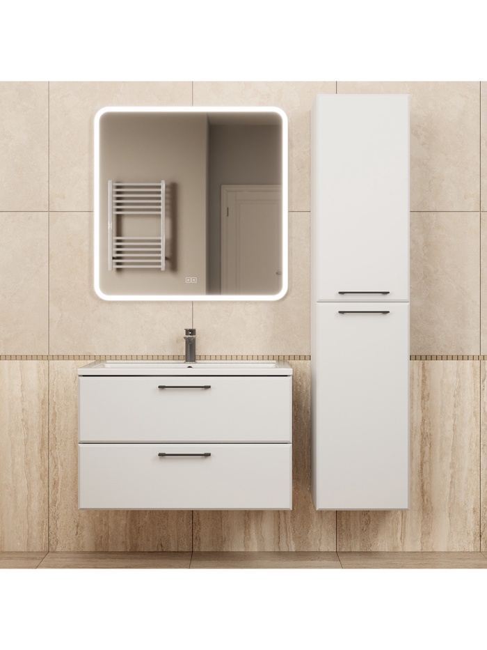 • Элегантный дизайн: тумба украшена приятной на ощупь матовой поверхностью Soft Touch, гармонично дополняющей интерьер ванной комнаты.