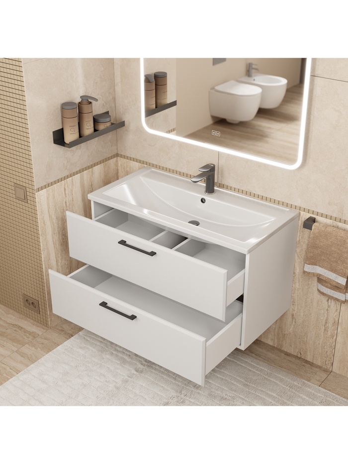 • Подвесная конструкция: удобная подвесная система облегчает уборку и визуально расширяет пространство ванной комнаты.
