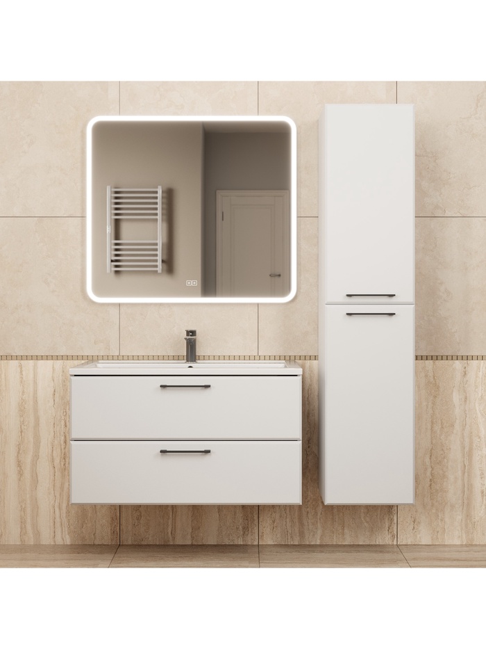• Элегантный дизайн: тумба украшена приятной на ощупь матовой поверхностью Soft Touch, гармонично дополняющей интерьер ванной комнаты.