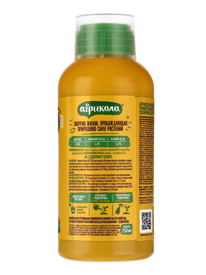 Применяется для всех культур при основном внесении в почву летом, когда происходит интенсивное наращивание зелёной массы, рост завязей, формирование урожая огурцов, томатов, перцев, моркови, лука, картофеля и др. овощных культур. Для получения максимального эффекта удобрения вносятся в почву в течение всего вегетационного периода с интервалом 10-15 дней. Перед внесением удобрения его разводят из расчета 100 мл на 10 л воды и вносят под корень на площади 3-5 кв. м.