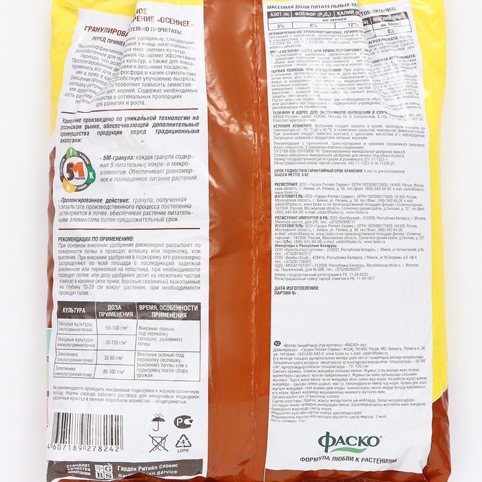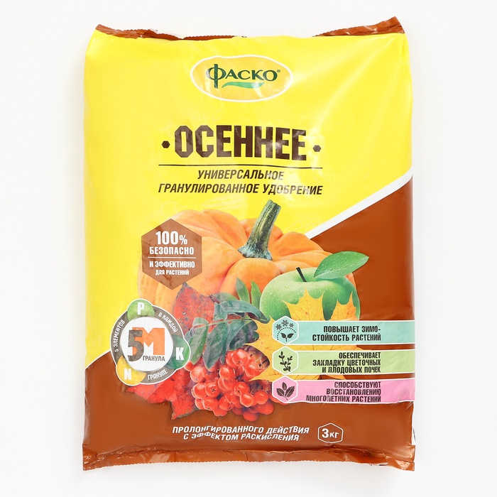 Применяется для подкормки растений в конце вегетационного периода (август-октябрь), что особенно важно для многолетних культур.