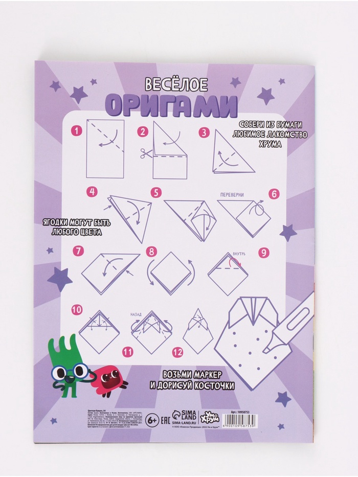 УМ И ХРУМ Цветная бумага А4, 16 л., 8 цв., немел., 2ст, на скрепке, 48 г/м²