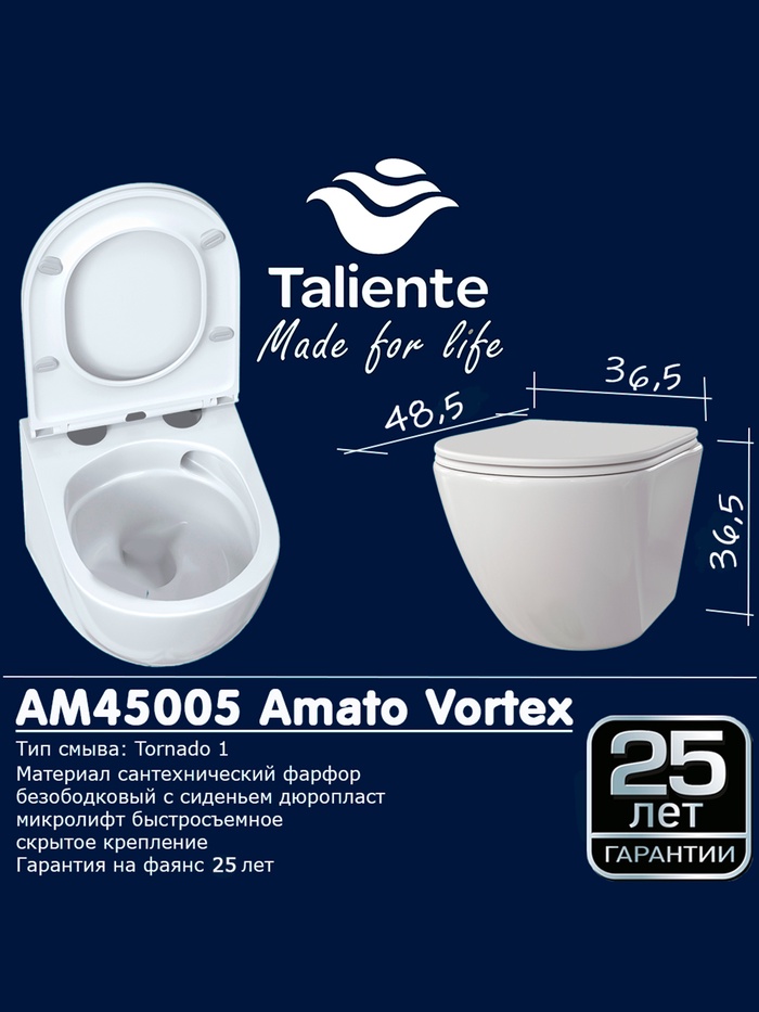 Унитаз Taliente Amato Vortex AM45005, подвесной