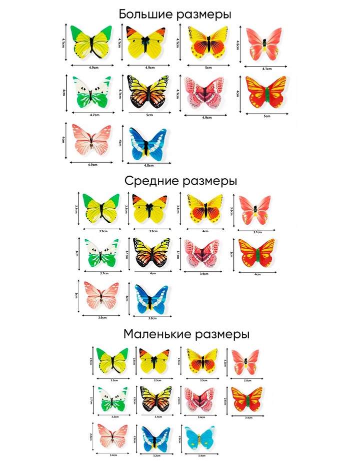 5 средних бабочек: размер 3х4 см