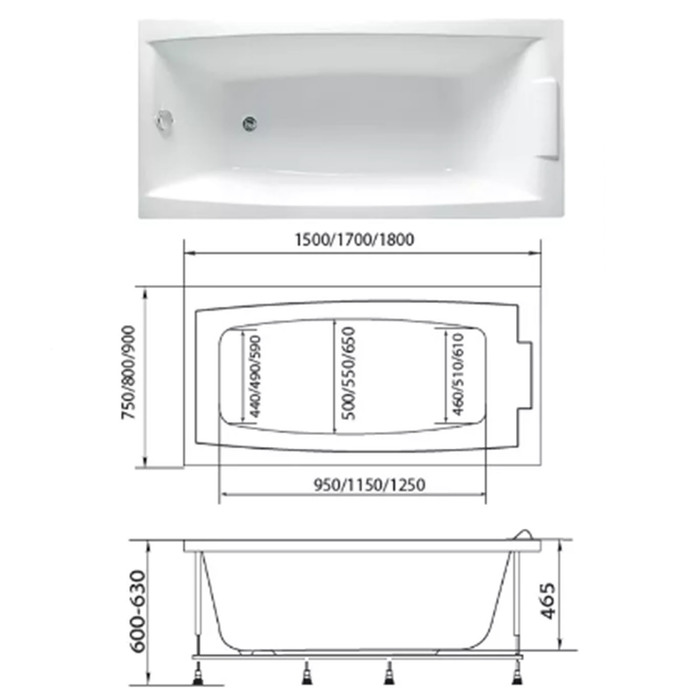 Ванна акриловая 1MarKa Aelita, 170х90 см, без каркаса и панели