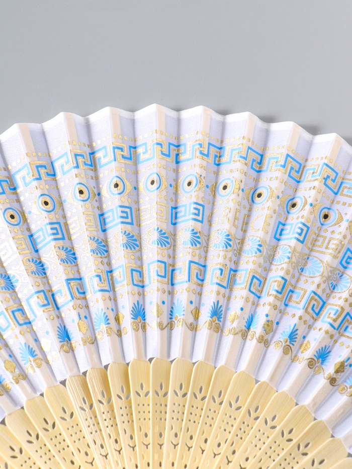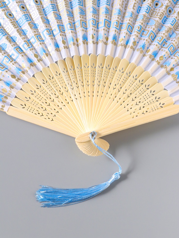 Веер дерево, текстиль с кисточкой "Греческий орнамент" белый с золотом 23 см