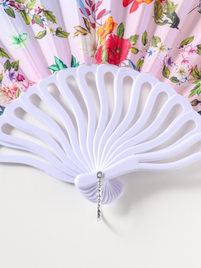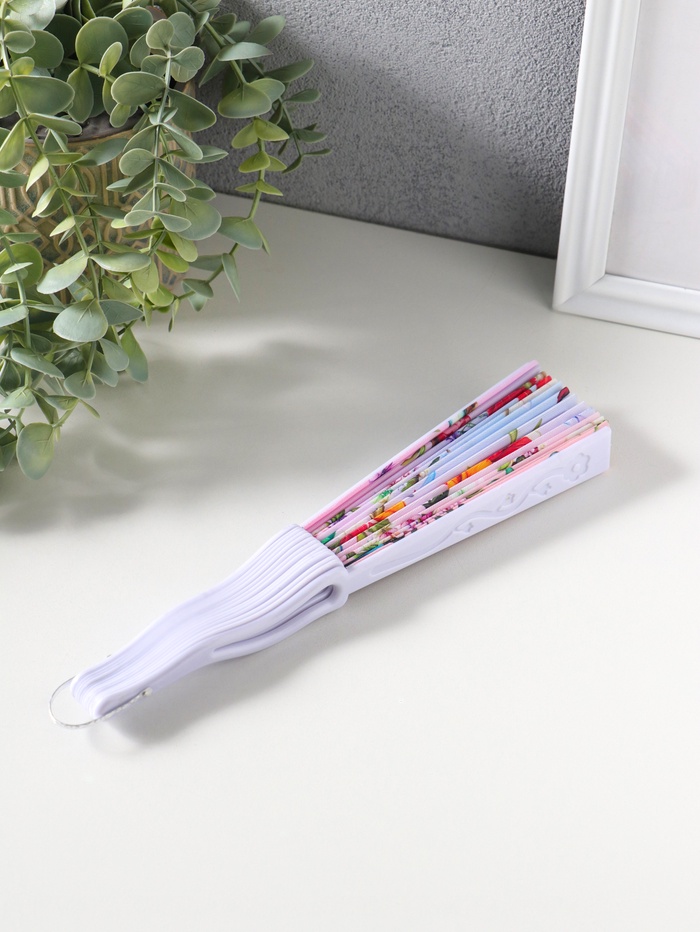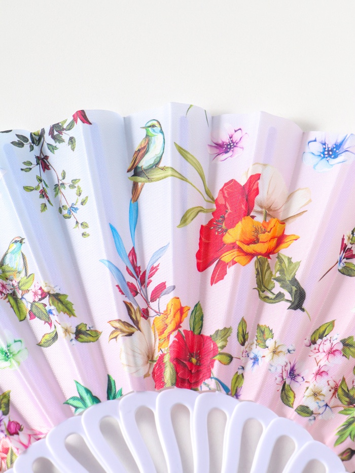 Веер пластик, текстиль "Певчие птички и цветы" 22,5 см
