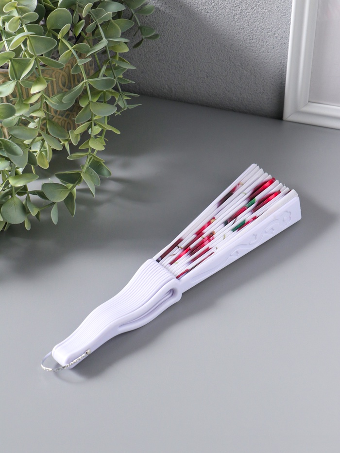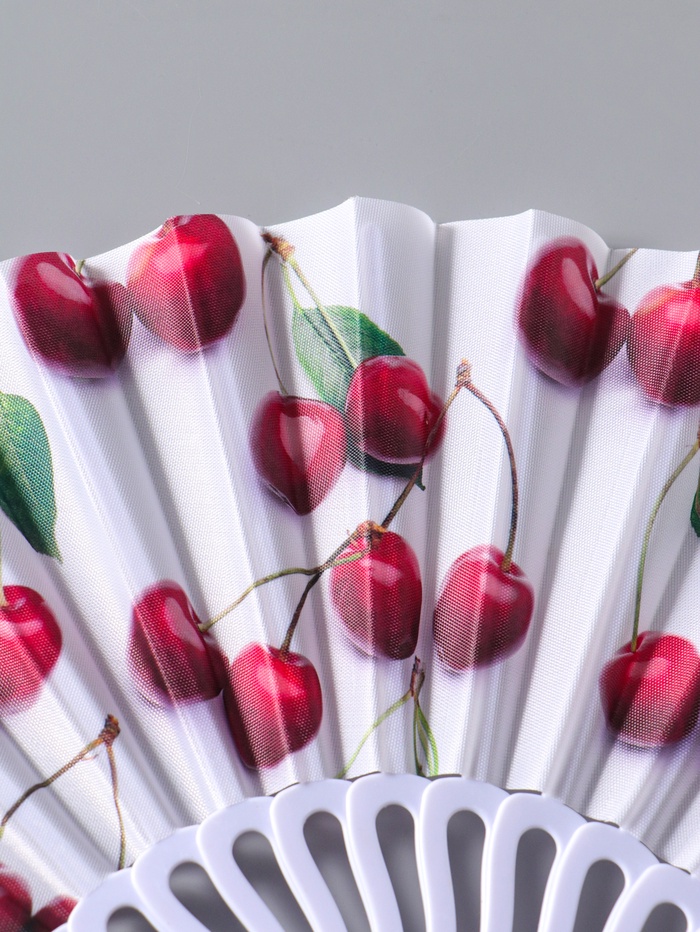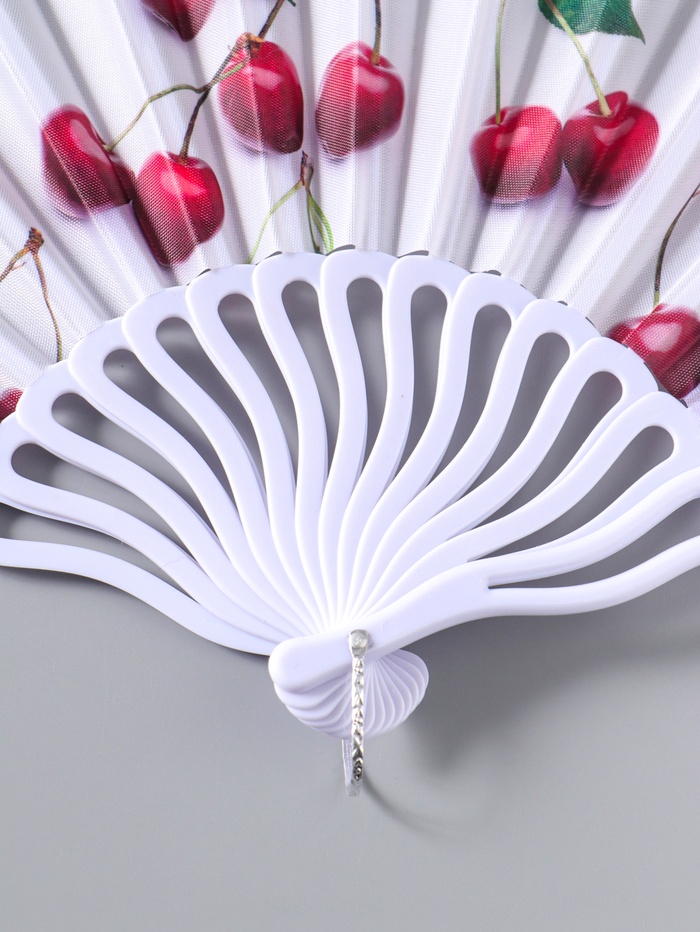 Веер пластик, текстиль "Вишенки на белом" 22,5 см