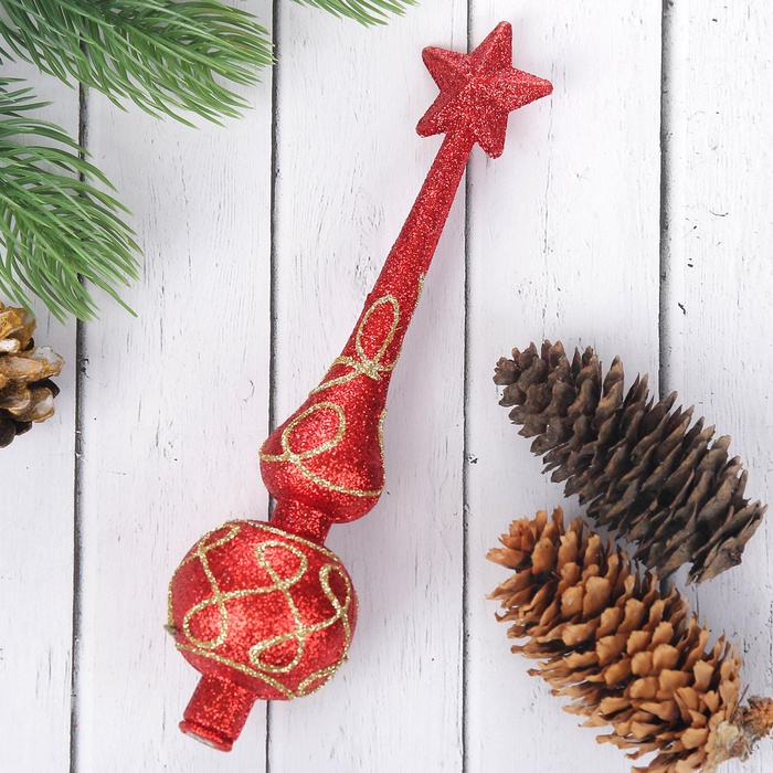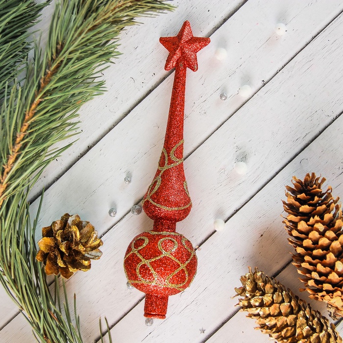 Украшение верхушки ёлки играет важную роль в формировании общего настроения праздника. Красный наконечник с рисунком становится центром композиции, объединяя в себе традиции и современный взгляд на оформление. Его выразительный дизайн помогает сделать интерьер более насыщенным и уютным, создавая ощущение праздника и семейного тепла.