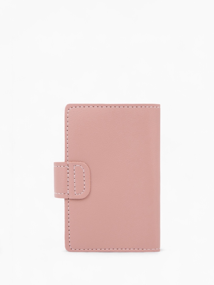Визитница на кнопке, 26 карт, однотонная, розовая