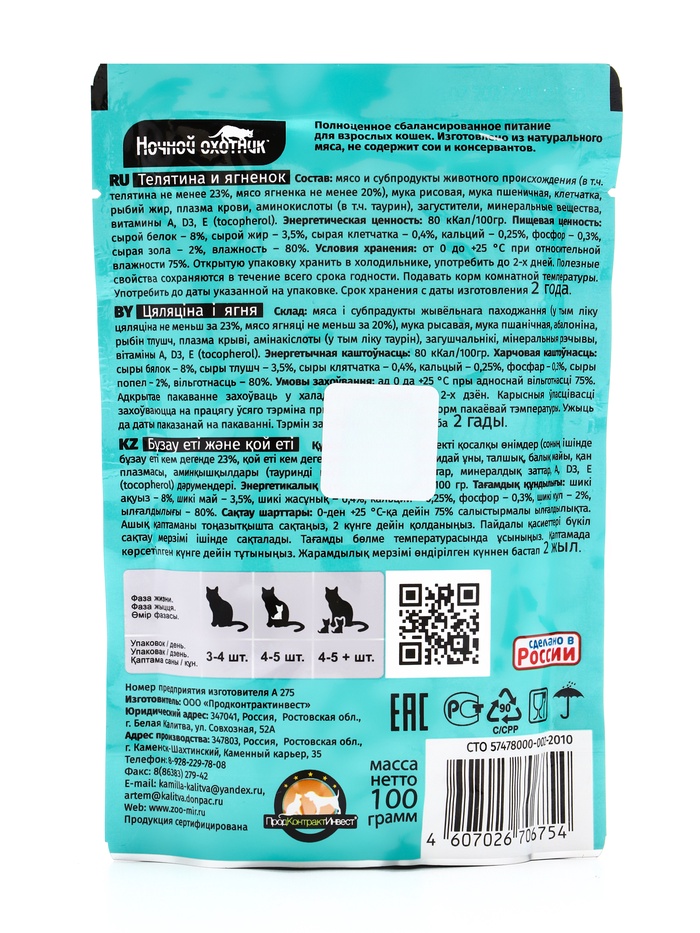 "Ночной охотник" из серии "Суперпремиум" - нежные кусочки мяса в приятном желе.